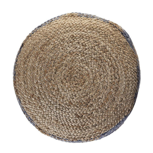 18-Inch Blue Striped Cotton Pouf Ottoman