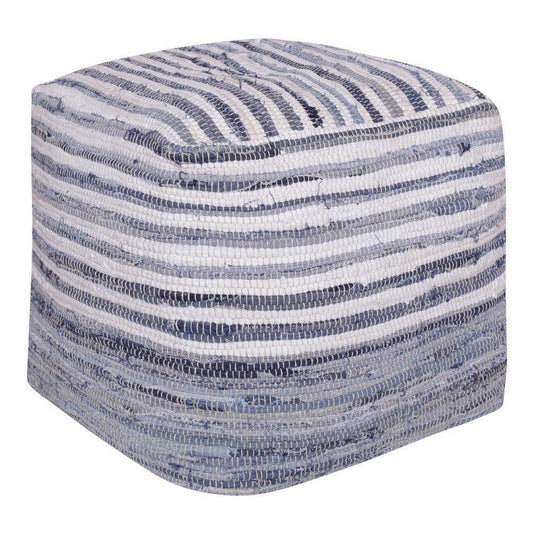 Blue Denim And Ivory Square Pouf - Cotton Stitched