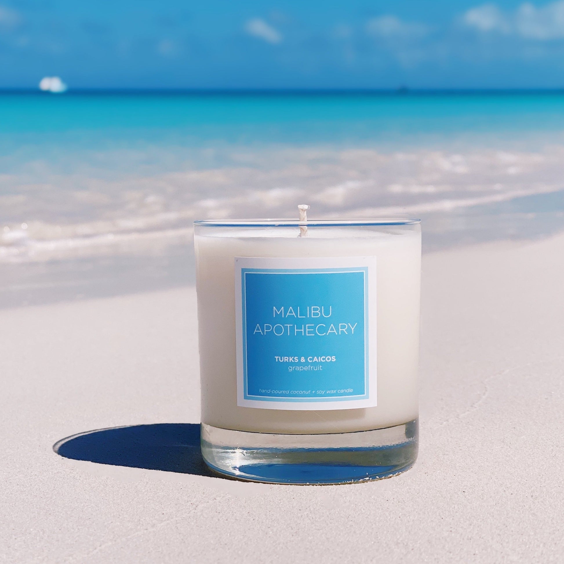 8.5oz Candle | Clear Gloss Candle with Blue Accent Label | Clear Vessel | Coconut + Soy Wax | Vacation inspired Fragrances | Free U.S. Shipping