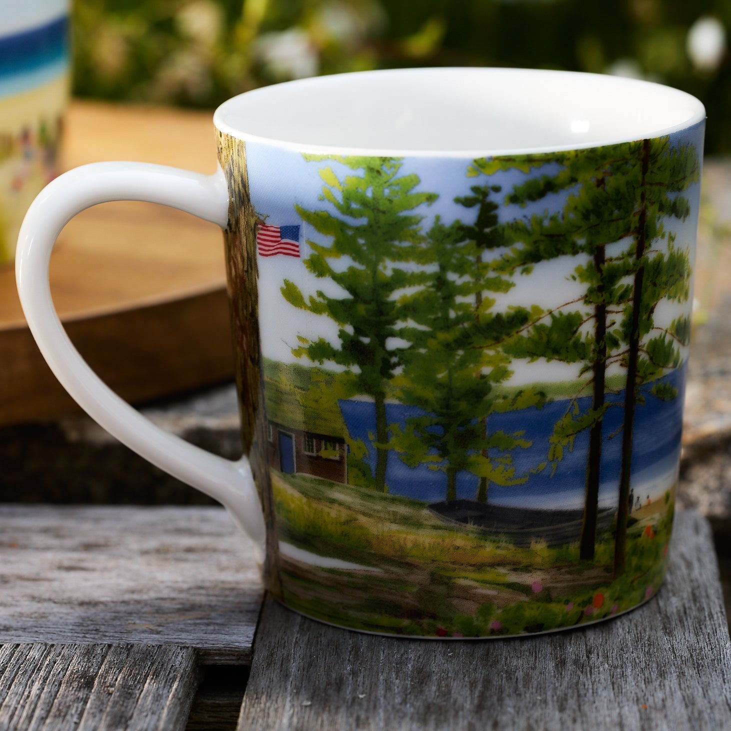 - Set of 4 Mugs: Each mug features a distinct watercolor landscape, offering a unique scene of New England's beautiful coastlines.