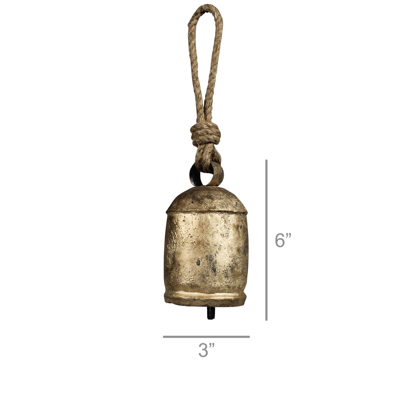 Add a touch of rustic, old-world charm to your holiday decor with these Gold Ornaments inspired by classic temple-style bells. Crafted from metal with brass plating, these timeless bells feature a metal clapper that produces a pleasant "ding" with every movement, making them a perfect addition to your festive decor. Hung by an 8-inch rope, these ornaments exude a rough, vintage aesthetic that beautifully complements coastal, rustic, or traditional holiday themes.