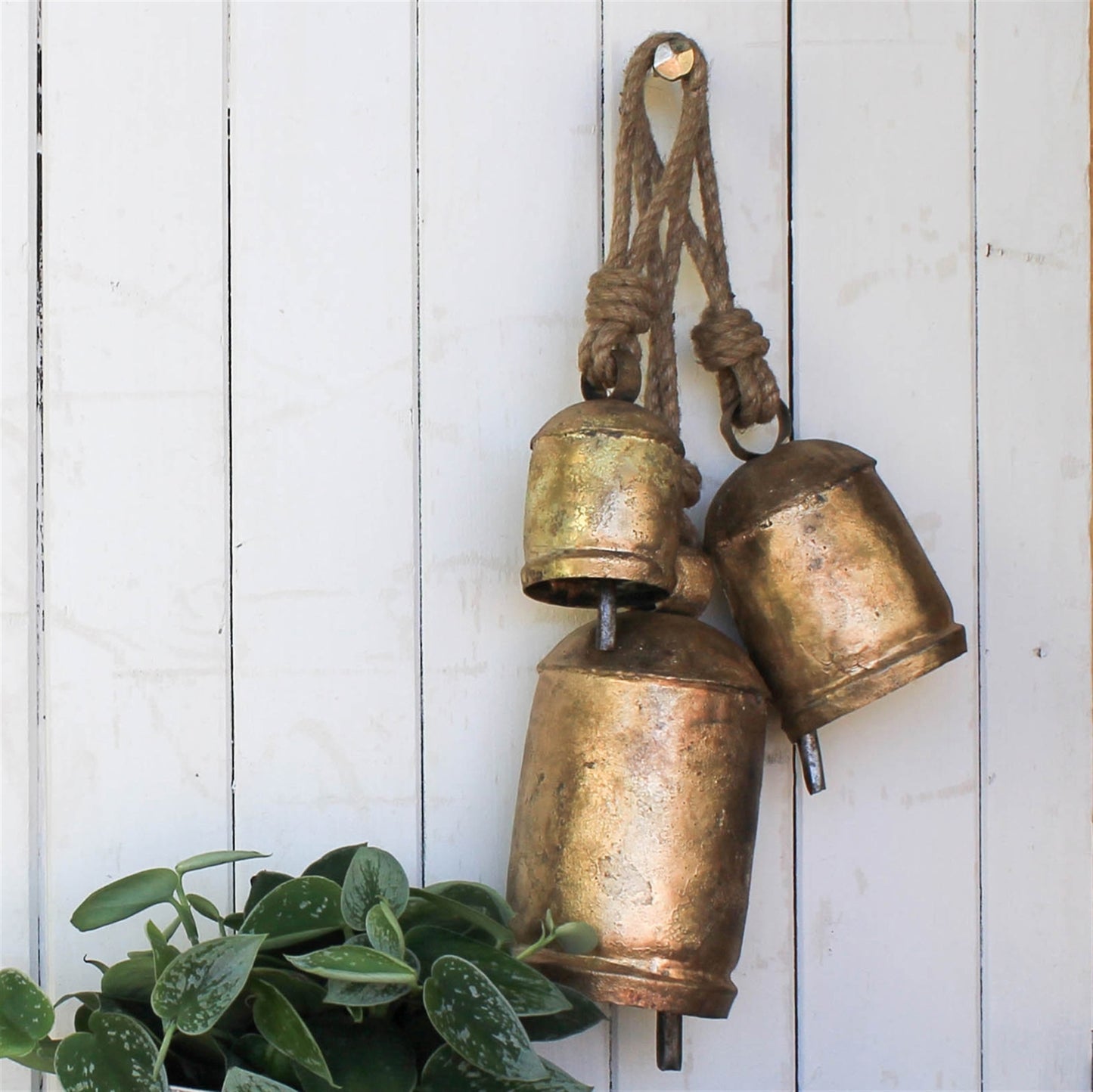 Set of 2 Chauk Bells with Rope Hanger - Brass