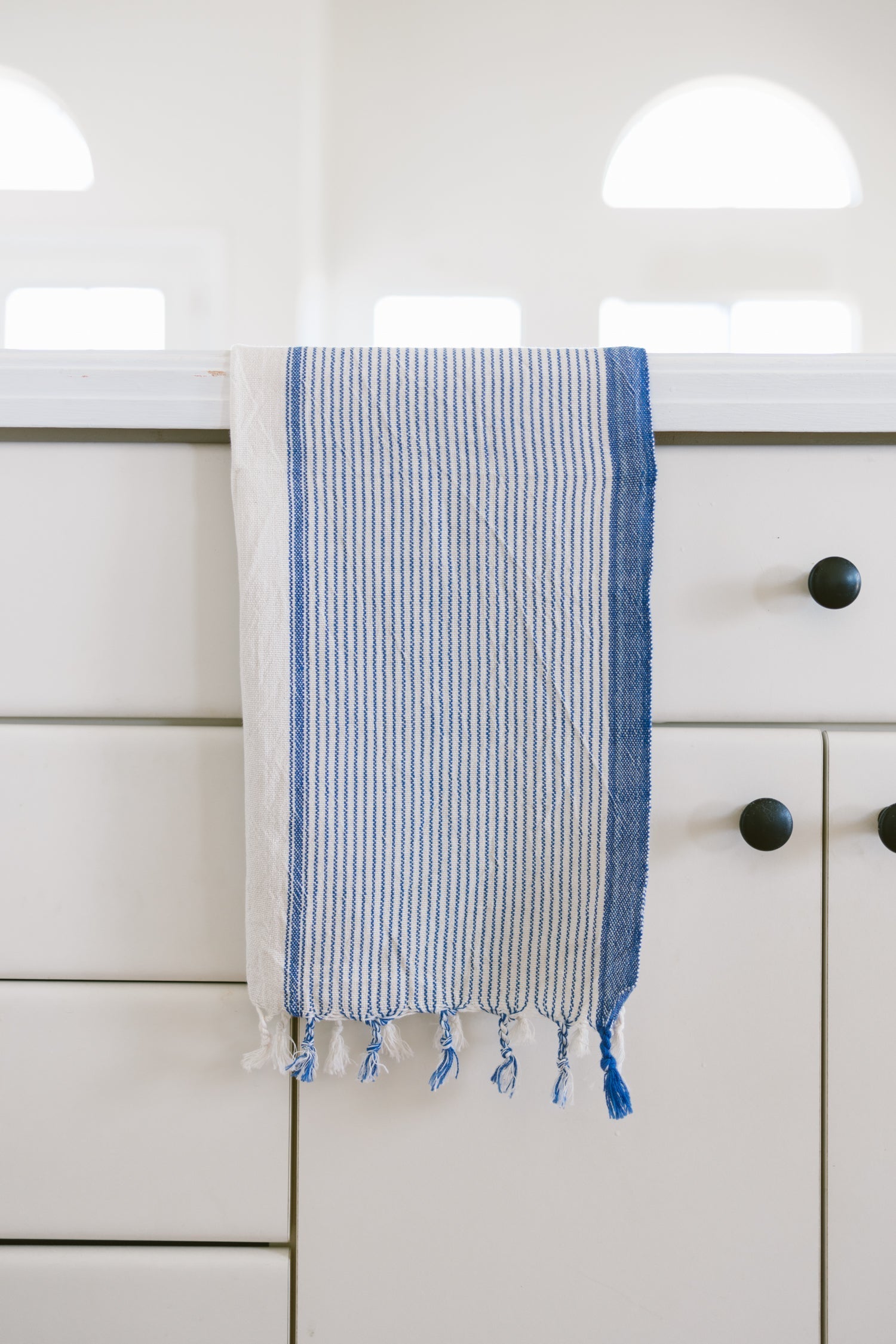 Handwoven by skilled Turkish artisans, our Ivory Blue Tribeca hand towel is lovingly crafted using ancient weaving techniques that have been passed down for generations. Woven from the highest quality premium cotton, our hand towels are lightweight, absorbent, and suited for everyday use. Perfect in both a kitchen and bathroom.