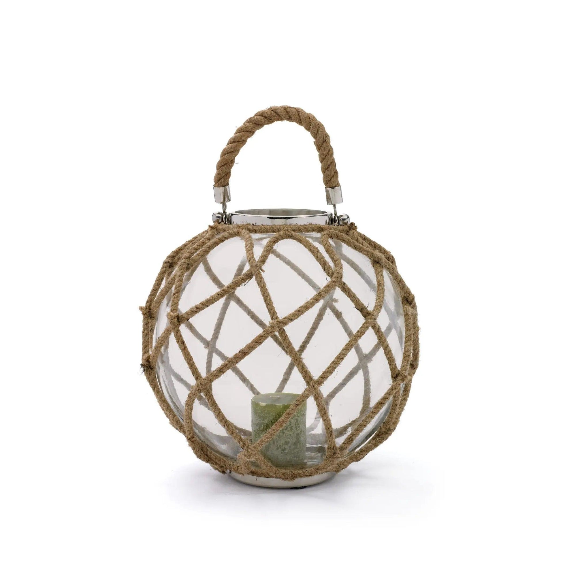 Lantern Decor: Coastal Charm with Glass, Nickel, and Rope