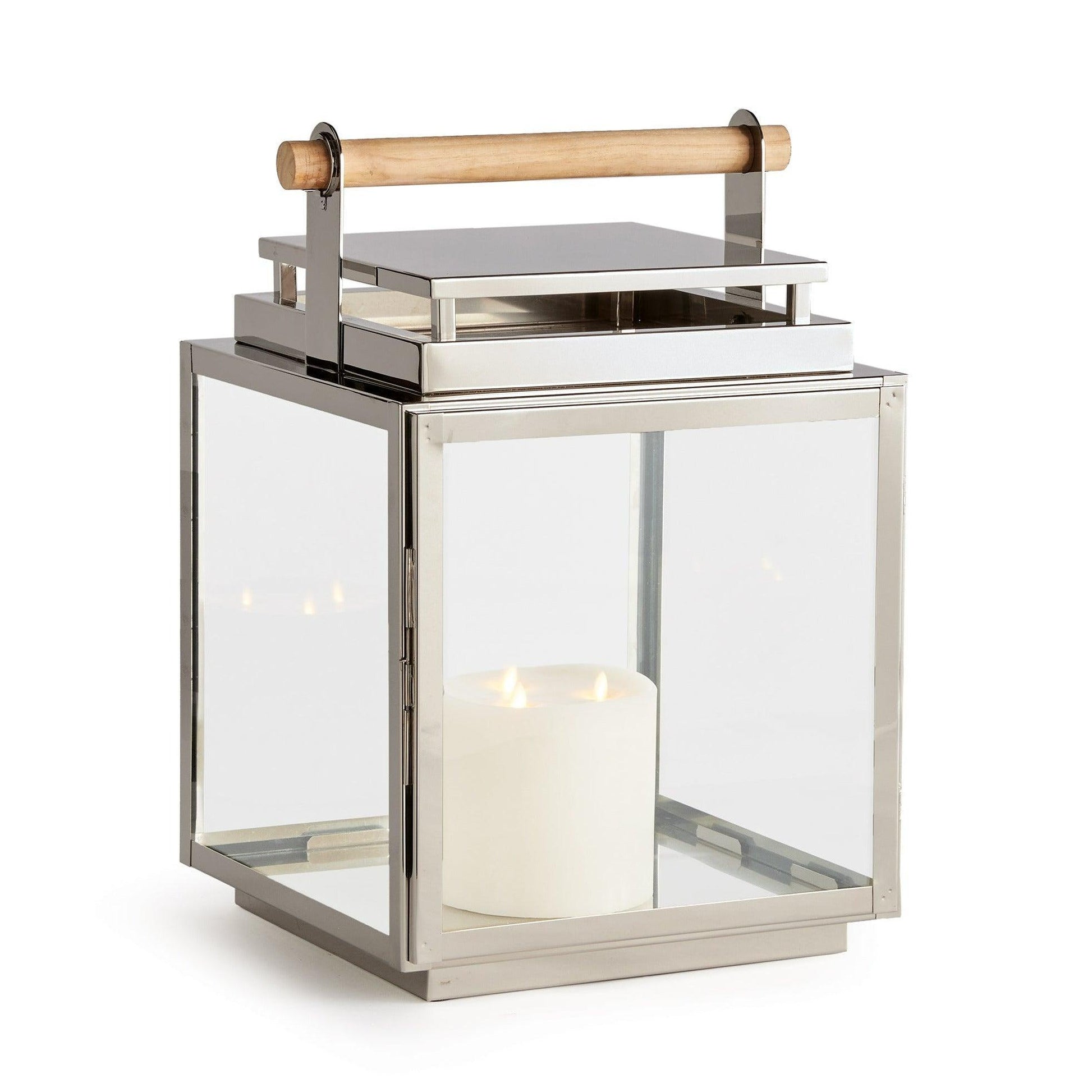 Crafted from high-quality stainless steel with a sleek teak handle, the Adwin Lantern is designed for both beauty and functionality. The nickel finish not only adds a touch of luxury but also evolves gracefully with time and weather, enhancing the lantern's charm with each passing season. Pair it with our small and medium Adwin Lanterns to create a cohesive and inviting ambiance.